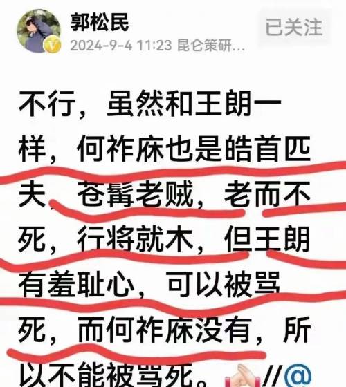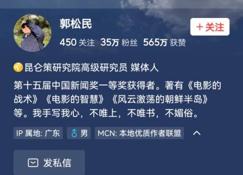 郭松民作为一个有35万关注的网红,也算个公众人,他的言行不仅仅代表个人,还会影响到他在公众心目中的形象以及他所可能代表的群体或观点的公信力。