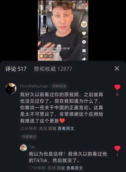 有多个外国网友在小红书上谈及到埃文凯尔后,对此也表示:以前Tiktok上刷到过埃文,但之后就再也没有刷到过了,并且外国网友如今也明白了为什么刷不到埃文了,就是因为埃文敢说一些关于中国的正面言论。