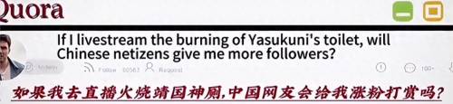 最近一个叫杰克的美国士兵,在Quora上发出了一个灵魂拷问:如果我直播烧了日本的靖国神社,那么中国网友能给我涨粉吗?