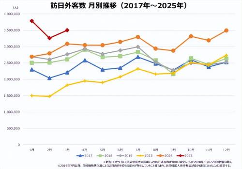 数据显示日本第一季度接待的外国游客累计超过 1054 万人。