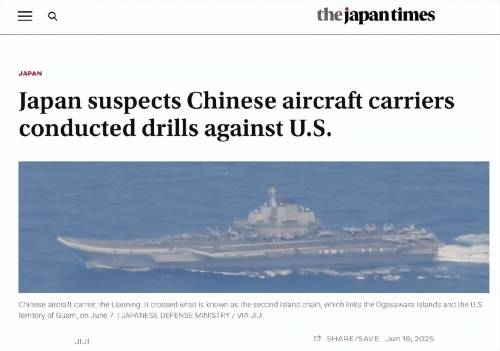 《日本时报》认为,解放军在第二岛链附近海域集结两艘航母的理由,是为了让其中一艘航母可以在训练中扮演美军航母。