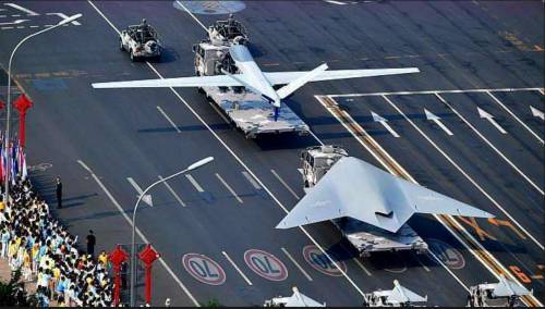 唯一例外的,是在2019年国庆大阅兵时,中国某型攻击无人机1隐身无人机开创了首次以未定型服役装备用模型参加国庆大阅兵的先河。参加阅兵的中国某型攻击无人机1隐身无人机使用卡车装载,与其他无人机混编的方队一起参加了检阅。这架中国某型攻击无人机1隐身无人机不是实机,从机翼后部的襟翼就能看出来。
