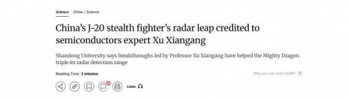 6月11日,香港《南华早报》报道,得益于中国山东大学团队所取得的技术进步,中国在J-20隐身战机的某型相控阵雷达上,已经采用了一种新型的半导体技术,使其探测距离增加了两倍。J-20战斗机雷达性能的提高将,大大有助于中国空军提升战斗力。
