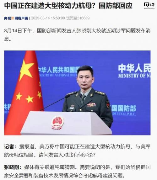 不是,有完没完了?就死磕核动力了是吧?3月14日,针对这些不靠谱的报道,国防部特意发布了消息。而相比较于之前,袁华智的打太极,国防部的回应要强硬许多。