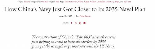 2025年6月19日,美国杂志《国家利益》网站就刊登了一篇文章。该文称,中国的第四艘航母已经在建造了。2035年,中国将拥有6艘航母,有能力与美国海军正面交锋。