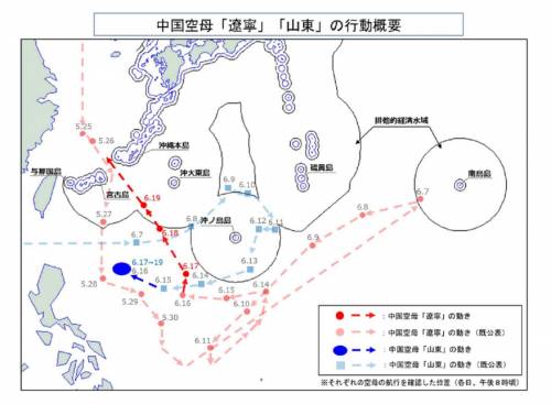 【日本防卫省公布了解放军双航母的大体活动轨迹】