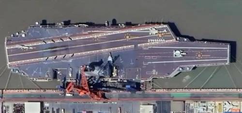 “福建”舰飞行甲板上画有36个停机位,这意味着该舰的全甲板状态的舰载机歼-15T或歼-35将有36架。