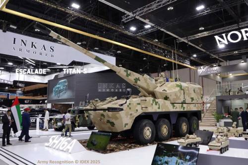 事实上,就在2月21日的阿布扎比防务展上,北方工业的确有一款8×8轮式底盘的155毫米口径自行火炮参加展出,名称为SH-16A型。自此基本事实就很清楚了:SH-16很可能为解放军自用版本,是履带式底盘自行火炮。SH-16A则为出口型号,或者也可能装备于解放军中型合成旅部队、轻型合成旅部队甚至民兵部队,使用轮式底盘。
