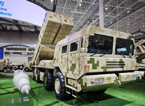 ▲“火龙”280A弹道导弹(左)和其发射平台AR3远程多管火箭炮(右)