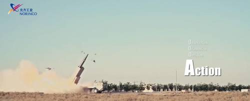 ▲“火龙”280A弹道导弹从AR3远程多管火箭炮上发射的瞬间