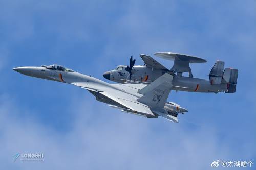 ▲涂刷了彩色对齐标线的歼-15T与空警-600