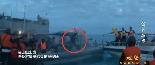 【中国海警控制小艇后菲方船员跳海】