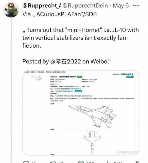 其实,这款双垂尾的新型战机并非首次进入大众视野。早在半年前,就有军事博主披露过其独特的双垂尾外形特点,由于该机采用了粗壮的双轮前起落架,因此认为这是一款新型弹射型的舰载机战斗教练机。随后该机也引起了海外军事博主的关注和讨论,例如德国军事专家鲁普雷希特在今年年初的博文中就指出,中国洪都似乎正在致力于研发一款双垂尾版的“猎鹰”战斗教练机。