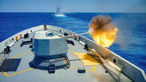 054A护卫舰76毫米主炮射击