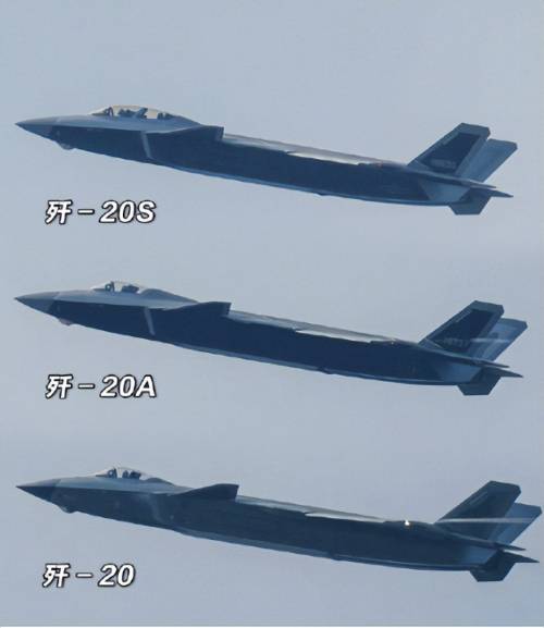 图中可见多款J-20战斗机的细节差别