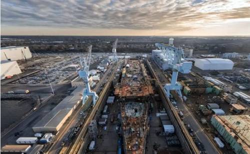 2004年,弗吉尼亚州纽波特纽斯造船厂正式开工,钢板切割的火花照亮厂房,工人们忙得热火朝天。耗资130亿美元的“福特号”,被宣传为航母技术的巅峰,号称每个零件都精益求精。2005年,钢材切割完成;2009年,龙骨铺设,仪式上彩旗飘扬,官员们举杯庆祝。