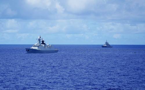据俄罗斯卫星通讯社报道,俄太平洋舰队新闻处8月14日宣布,一支由俄罗斯海军和中国海军组成的舰队,在堪察加彼得罗巴甫洛夫斯克港完成补给后,启航前往太平洋执行亚太地区联合巡航任务,舰队中有特里布茨海军上将号大型反潜舰、中国海军绍兴号驱逐舰和千岛湖号综合补给舰。