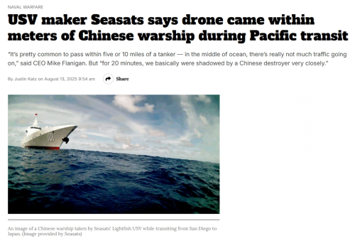 那么2025年6月,Seasats公司是否安排了更新的演示项目,比如横渡太平洋到日本演示,或者横渡太平洋来检验无人航行器的适航性能,就不清楚了。咱们盲猜一个,这二者皆有,既有自主航行试验,又有分布式电磁频谱战的演练。