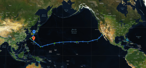从美国媒体画出来的示意图来看,Lightfish无人艇从圣迭戈出发,走中太平洋路线西进,中间似乎路过了珍珠港,到达关岛附近海面的时候,似乎已经开了50多天。