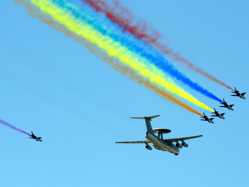 还好,国庆六十周年大阅兵天气绝佳。某型预警机、空警-200都是第一次亮相,因此此次大阅兵虽然装备总体保守,但是可看点依然不少。