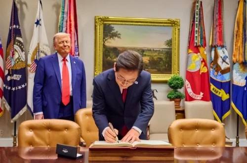后来在白宫会见韩国总统李在明时,他还半开玩笑地说:“我们可以坐同一架飞机去中国,这样能节能环保。”