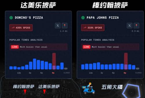 例如这两天在五角大楼加班的工作人员,根据网友在网络上晒出的截图跟调侃的话语来看,五角大楼周围的披萨店这两天生意好极了,订单量暴涨。