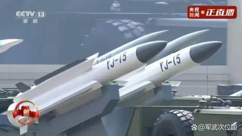 在本次阅兵中,海军装备的某型舰空导弹、海中国某型反坦克导弹防空导弹、LY-1舰载激光防空武器系统,以及鹰击-15反舰导弹、鹰击-19、鹰击-17、鹰击-20高超声速反舰导弹、都通过这种形式,首次参加了九三大阅兵。
