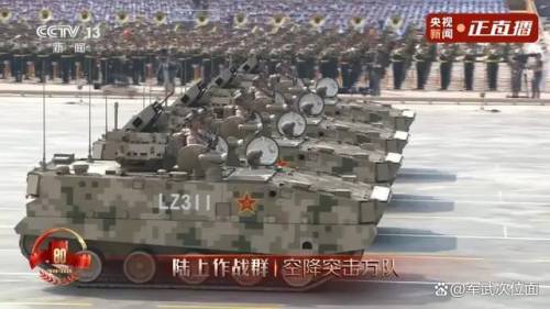 紧随其后的,是解放军装备新一代空降车族的空降突击方队,包括新型空降装甲输送车、空降步兵战车和120毫米空降迫榴炮。这个全新的车族也是首次公开亮相在大家面前的新装备,配备有遥控武器站、新型反坦克导弹和主动防御系统,实在是相当豪华了。