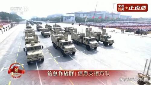 信息作战群的受阅装备全部都是各种电子对抗车辆、信息支援车辆。