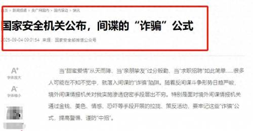 九三阅兵刚结束,国安部就扔出一颗重磅炸弹——24小时内,6名间谍落网。