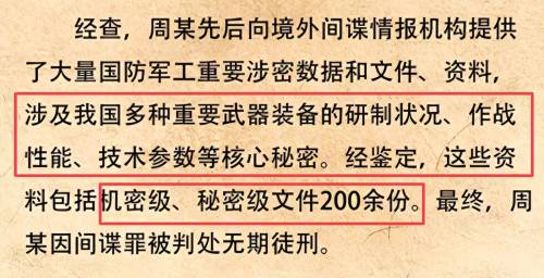 从2013年开始,他就将我国尖端武器的研发进度、技术参数等核心情报一点点泄露了出去。