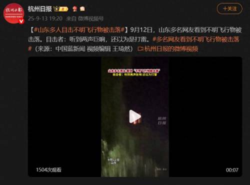 山东击落不明飞行物!逐帧分析:是真的