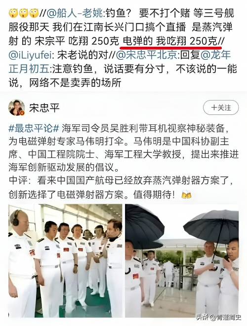 “要是中国航母是,我直播吃翔250克,若是蒸汽弹射,你吃!”