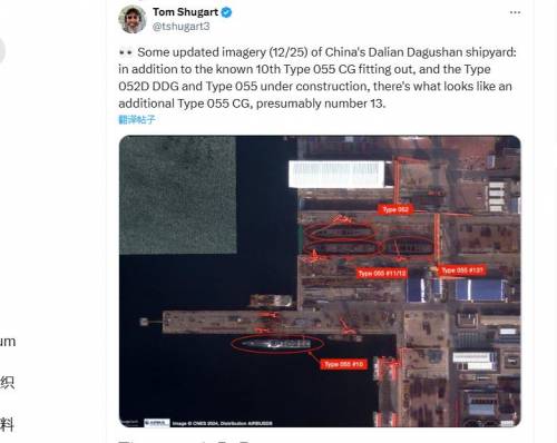 海外社交平台曝光国内北方某造船厂在去年年底的卫星照片,相关专业人士分析后发现,照片中竟有3艘正在建造/舾装的055万吨驱逐舰,把造船厂的船台塞得满满当当。