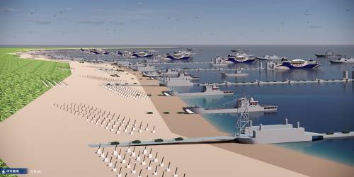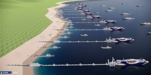 过去的两栖登陆作战,大多依赖于民用滚装船、坦克登陆舰以及拼接栈桥等方式,依靠半潜船坞和栈桥在海岸构建临时“人工码头”,然后通过滚装船等运载装备。然而,这种方法在面对复杂的海岸线和敌方强力防御时,往往会遭遇诸多问题:登陆地点的选取、设备的运输、栈桥的搭建,尤其是在面对敌人炮火的情况下,所有这些步骤都充满不确定性,甚至可能面临第一梯队登陆后无法立足的困境。