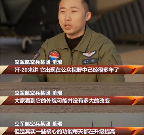 据歼-20飞行员董B所说,他每一年见到的歼-20都是不一样的,每一年都会有新的改进和进步,核心功能每天都在升级提高。