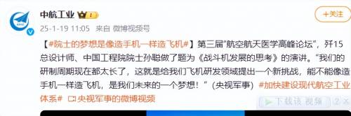 在刚举办不久的第三届航空航天医学高峰论坛上,歼-15,歼-30战斗机总设计师孙聪更是提出了像造手机一样造飞机的美好设想。