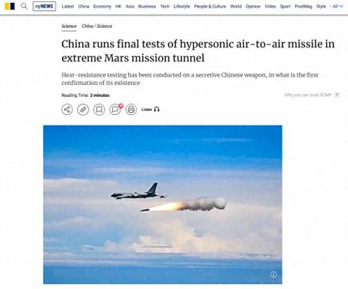 近期,香港媒体《南华早报》报道了我国通过火星任务的设备,对一款高超音速空空导弹进行了极限测试,导弹在9马赫的超高速下成功经受了高温气流的冲击,标志着我国高超音速技术在空空导弹领域的突破。这款导弹的测试结果,意味着我国在高超音速武器研发上又取得了新的进展。