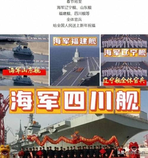 不知道是不是受两架六代机影响,今年解放军各大军兵种拜年好像“高调”很多,没有“战忽”拿旧装备伸手要钱的意思。除了六代机,甚至还首次公开远程战略,可以在5000公里外监测洲际弹道导弹。去年海军搞了个三航母拜年,今年更是大方直接来个了“四航母”硬核拜年,包括第一艘航母、山东舰、福建舰、四川舰,显然在官宣中076型确实属于航母队列。