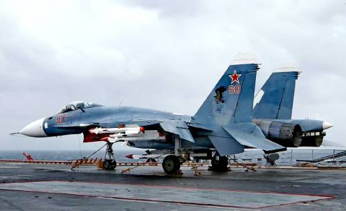 当时俄罗斯手里有两款舰载机,一款是米格-29K,一款是苏-33战机。