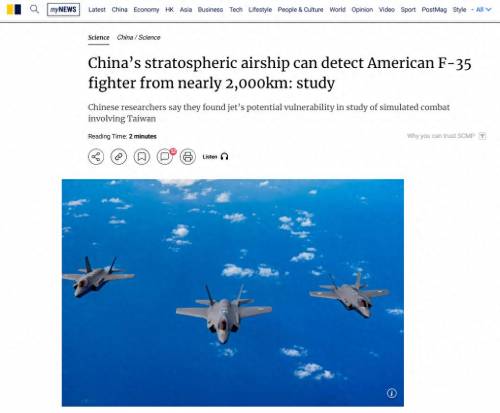 最后,平流层飞艇还可与中国现有的JY-27A远程雷达、低轨卫星监视系统等反隐身体系联动,形成对美军隐身战机的多层次探测能力。