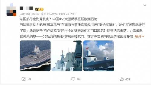 近期,法国海军“戴高乐”号核动力航母战斗群前往菲律宾访问,并和菲军在南海展开联合演习,法国驻菲律宾大使声称,将加强和地区伙伴的合作,维护国际法和海上航行秩序。外界普遍认为,法国公开力挺菲律宾是在对中国发出警告信号,此举也毫不意外地引发了中国舆论场的强烈反应。