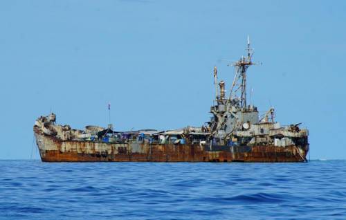 1999年,菲律宾派遣一艘军舰在仁爱礁非法“坐滩”直到今天,意图改变该礁的“现状”,并以此作为占据或控制该岛礁的手段。