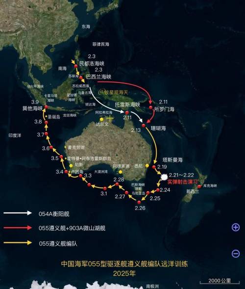 近日,结束绕行澳大利亚3/4海岸并决定返回的中国055编队,已经于9日通过了巽它海峡。接下来编队向北继续航行,最终可通过龙目海峡返回南海。
