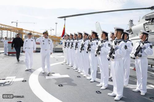 先是两排手持95式短突的水兵组成仪仗队,接受伊朗将领的检阅,随后更是公开了全舰内外,包括舰桥的驾驶舱等核心舱室都大方展示,伊朗海军司令一行人听着中方人员的讲解,仔细了解了各型武器和系统的性能,不时露出沉思的神情。