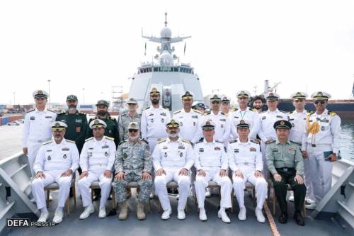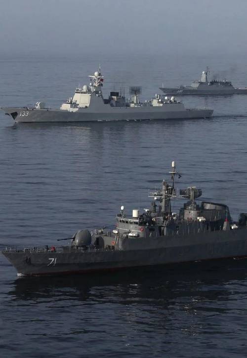 ▲“安全纽带-2025”海上联合演习,中俄伊三国军舰同框