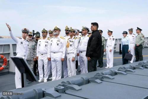 从伊朗媒体发布的照片来看,伊朗海军司令伊拉尼少将一行人在“包头舰”上参观了舰桥、驾驶室、甲板停机坪和垂直发射装置等关键部位,并认真听取了中方人员的介绍。伊拉尼少将还在贵宾留言本上留下了文字,表达了对中国海军装备的赞赏。