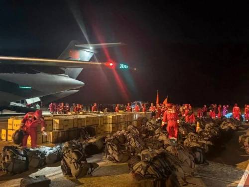 与此同时,中国两支救援队伍出发速度之快,也令人印象深刻。在不到12小时内,他们就携带着先进的生命探测仪和地震预警系统等设备,抵达了受灾重地仰光,并迅速开始高效的救援行动。