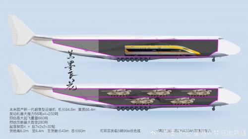 如果这个构想实现,将被命名为运-40,有军迷网友根据论文的数据,做了一些CG图来帮我们直观的了解这架未来最大的运输机(下称运-40)。
