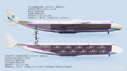 并且,目前俄罗斯也没有再制造运载能力大于安-124运输机的平台,美国也没有设计大于C-5银河巨型运输机的ppT。
